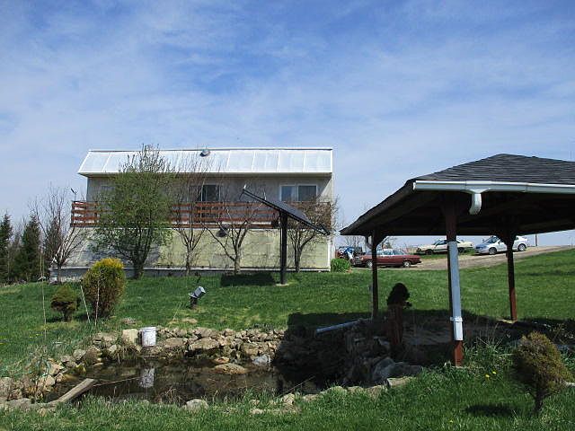 Unique Custom built solar passive & wind power home. Features 3 bedrooms, 1.5 baths, attached 2 car garage w/workshop. This home is currently on grid with utilities. However, was used for years with solar and wind power that can be hooked back up. Open concept LR/DR/KT area, with attached greenhouse, main level 1/2bath and laundry area, 3BR's & full bath on upper level. Has in floor heat, skylights, tile & laminated flooring & natural wood trim throughout. Relax on your gazebo overlooking a pond. Yard has mix of maple, pear and cherry trees.