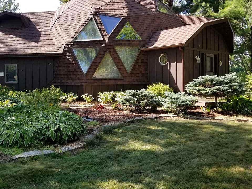 Geodesic Dome home on 3.25 ares.Two sheds, pond, pergola and 2 car attached 4 car deep.Kitchen-solid oak Scheirich cabinets,granite counter tops.Living room- Queen Air wood burning fireplace with real stone that reaches to the 6X10 copula on the third floor.Fireplace heats entire home. Upper level Master bath has sauna thermo, steam shower & Jacuzzi tub. Upper bedroom enters into a four season sun room with deck. Upper balcony- has 6X12 wet wine bar area.Lower level has family room, wet bar, collection and bonus room, storm shelter and full bath.House is wired for ADT security throughout.Cable hook-ups in every room.Additional heated 6+ car shop which can accommodate 2 car lifts with bathroom 2500 sq ft.Home warranty included.Property has recorded legal driveway easement and shared well.