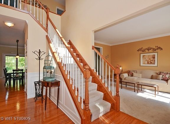 IMPRESSIVE ALL BRICK FRONT HOME LOCATED IN A CUL-DE-SAC WITH GREAT VIEW OF THE OPEN PRAIRIE AREA & A MINI PARK. COZY 5 BEDRMS 2.5 BATH HOME WELCOMES YOU TO OPEN CONCEPT FLOOR PLAN W/ GLEAMING HARDWOOD FLR. 2-STORY FOYER LEADS TO WELL PLANNED KITCHEN WITH ISLAND, EATING AREA & FAMILY ROOM. FORMAL LIVING AND DINING ROOM WITH WAINSCOTTING. SPACIOUS EAT-IN KITCHEN, SS. APPLIANCES CORIAN COUNTER TOP. 42"CHERRY CABINETS, SUBWAY TILE BACK SPLASH. PANTRY. FIRST FLOOR 5TH BEDROOM BEING USED AS OFFICE/ DEN. FAMILY ROOM WITH VIEW OF PICTURE PERFECT BACKYARD FULL OF FLOWERING PERNNIALS. PAVER BRICK PATIO WITH FIREPIT & OUTDOOR GAS GRILL. 2ND FLR HAS 4 GOOD SIZED BEDROOMS WITH ITS OWN WALK-IN CLOSETS & CEILING FAN AS WELL. MASTER BEDROOM WITH TRAY CEILING & VAULTED CEILING IN MASTER BATH. 10 FT. CEILING UNFINISHED BASEMENT FOR FUTURE ENTERTAINMENT AREA.