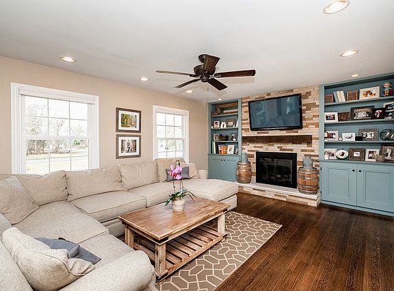 Charming Cape Cod 4 bedroom, 2 bath home located in quiet Elmhurst neighborhood! Brand New renovated kitchen Featured on HGTV'Kitchen Crashers', Designer Custom Wood Cabinetry, Carrera marble counters, stainless steel appliances, rustic built-in banquette and dry bar. New windows (2014), new dark walnut stained hardwood floors (May 2014), upstairs carpeting (May 2014) and roof (August 2015). Elegant Foyer opens to spacious living room featuring new built-in book shelves and new stone gas-start fireplace, large first floor bedroom with walk-in closet. 3 Spacious bedrooms upstairs and brand new shabby chic bathroom with sliding barn door. Family room features lots of windows filling the room with tons of natural sunlight, double sliding glass door opens to huge fenced in oversized landscaped yard with fire pit. 2-car detached garage. AGENT OWNED