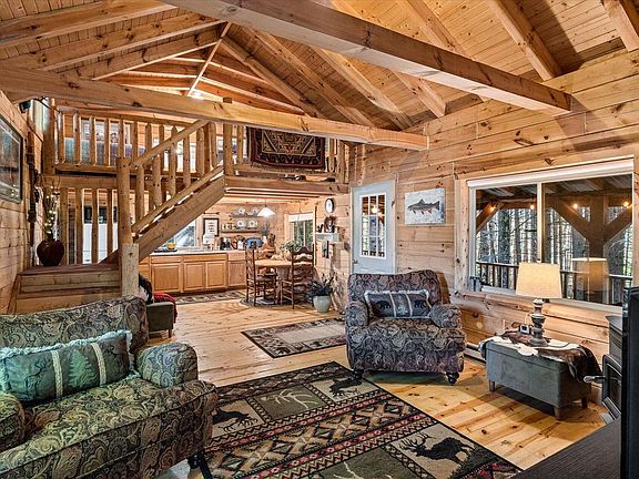 Cozy amish-built log cabinCozy loftQuiet country roadWooded acresOverlooking the woodsWhispering pinesVaulted wood-beam ceilings