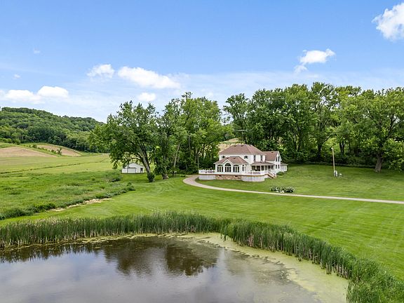 You can't find a more peaceful country setting than this property. 10 acres nestled in the valley with the most green rolling bluffs of Buffalo Cty. 5 bedrooms, 2 baths, 2 car attached garage & newer built 34x27 garage/shed/storage. Main floor office makes it ideal for remote work. This home boasts abundant natural light and a 24x12 sunroom with a pond view & Marvin windows. Eat in kitchen with plenty of cabinet space, mudroom/laundry/pantry, peninsula with storage & 2BRs on main level. 2 decks wrap around the home. Both have sunroom access plus patio area to enjoy the tranquility of the country. Upper level has been completely remodeled w/gleaming hardwood floors, new windows, spacious bonus room w/cozy fireplace & a flex area for crafts/play area to the right of the staircase. You'll love the view from EVERY room in the house. LL has built in storage & a finished get-away room! Conveniently located - 13mi to Mondovi, 18 mi to Alma, 20 mi to Durand & 30 mi to Eau Claire.