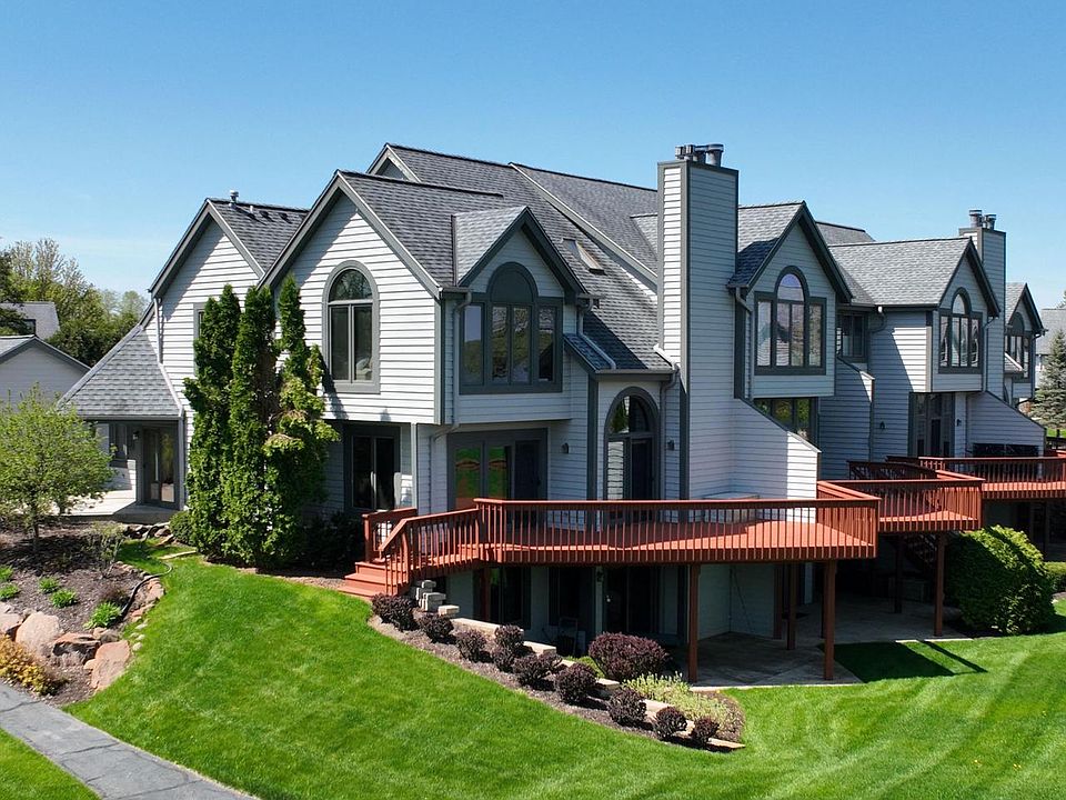 Little Muskego Lake views from all 3 floors! End unit w/lots of natural light. 3 bedrooms. 4 full baths. 2 gas fireplaces. Skylights. Cathedral ceiling. Open stairway. Hardwood floor in kitchen. 6 panel doors. Exposed basement, walk out to concrete patio. Finished lower level with rec room, family room, 2nd gas fireplace, 4th bedroom & 4th bathroom.. Plenty of options for a home office.1st floor office/ bedroom has walk in closet and full bath, could serve as first floor master bedroom. Granite transformation counters in kitchen. CINCH Home Warranty. Bay Breeze Assoc. has approx. 750 feet of frontage on Little Muskego Lake. Boat Slip #41.