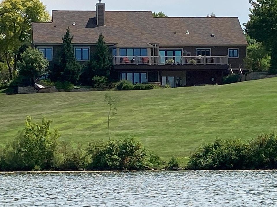 Over 300K in upgrades! Gorgeous custom designed Lake Brittany masterpiece, with glorious views at sunset! Beautiful open concept design with great room with soaring ceilings, floor-to-ceiling stacked stone fireplace & spectacular lake views. All bathrooms renovated with tile, marble & solid wood cabinetry. Refinished HWF's & new lighting. Large MBR suite with double WIC's & sprawling two-sided lake views. SS appliances. Lower-level walk-out with family room/bar, fourth BR, & tile and marble bath. Extraordinary Azek composite deck overlooking Piala's professionally landscaped grounds, with stacked stone & pavers. Professionally painted 2024. Newer dimensional shingle 50-year roof. Neighborhood access to two beaches, tennis courts, and sand pit volleyball.