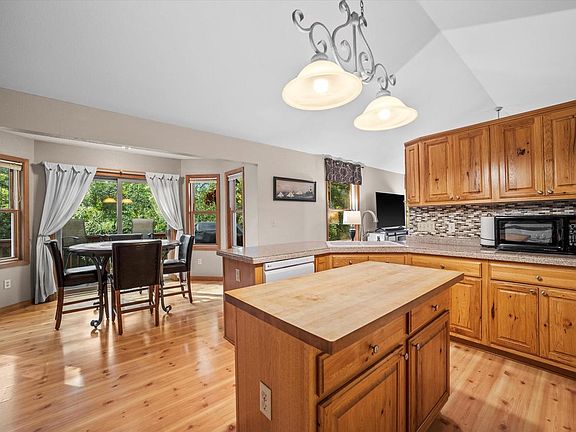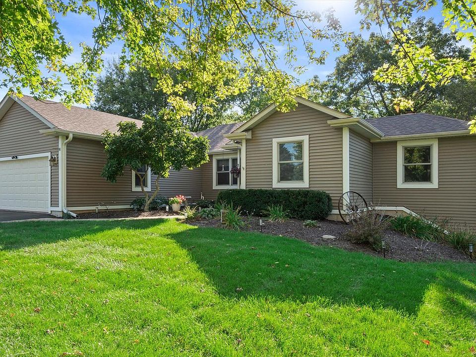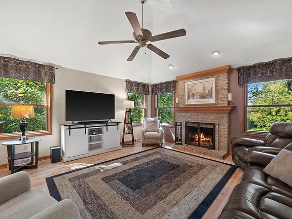 Nestled on 2.4 private, wooded acres, this beautifully maintained split-bedroom ranch offers the perfect balance of nature & convenience. Vaulted ceilings, a stunning brick fireplace, & a sun-filled kitchen with custom pecan cabinets create a warm, inviting heart of the home. The spacious master suite features a tiled walk-in shower & walk-in closet, while the walk-out lower level boasts two additional bedrooms, a full bath, bright windows, & plenty of storage. Entertain with ease indoors or out--relax on the wraparound porch, enjoy the lower patio with hot tub hookup, or gather in the open living spaces. With thoughtful updates including a new furnace (2021) & chimney relining (2024), this home blends comfort, privacy, & style--all just minutes from Mukwonago & Waukesha conveniences.