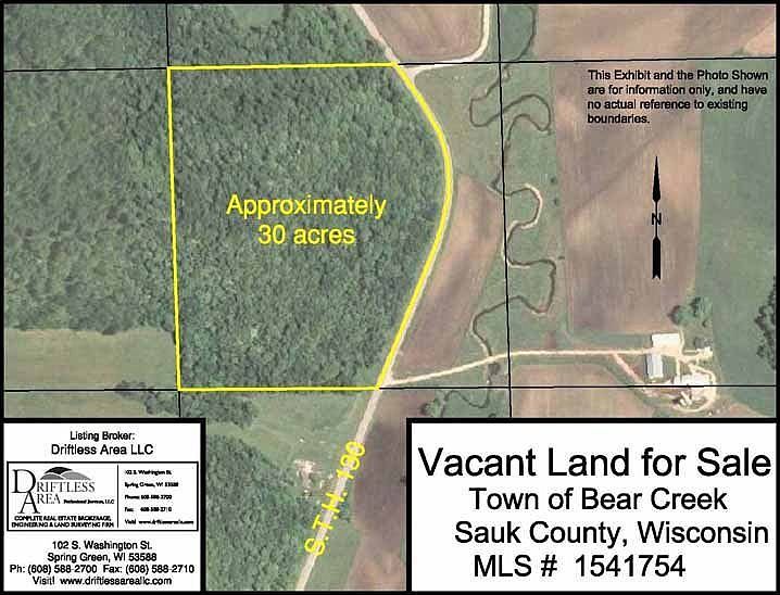Approximately 30 wooded acres located in the Town of Bear Creek. Seller to provide survey for lands west of STH 130 located int eh SW-NE Section 7. Final price to be survey acre based on $5000.00 per acre price.