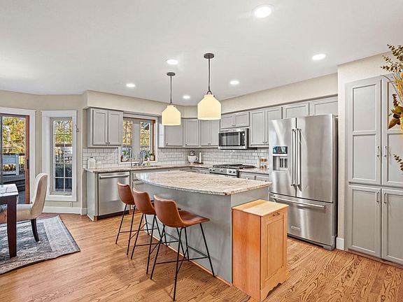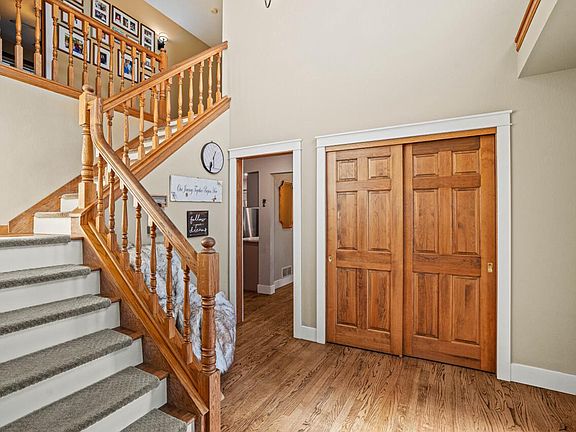 Perched on an acre lot, this stylish, updated home welcomes you with a 2-story foyer and oak floors that bring character and warmth throughout the main level. The eat-in kitchen blends everyday ease with granite countertops, stainless appliances (including beverage fridge), walk-in pantry, and sliding doors that open to a 3-tier deck overlooking the landscaped backyard--perfect for morning coffee or starlit nights. A custom barn door reveals a sun-drenched office/den that flows through French doors into an inviting living room with gas fireplace. Upstairs features four bedrooms, including a stunning primary suite with vaulted ceilings, remote-control blinds, two walk-in closets, and spa-like bath with Kohler shower system (body jets & rain head) and bubble massage tub. Ahhh...welcome home!