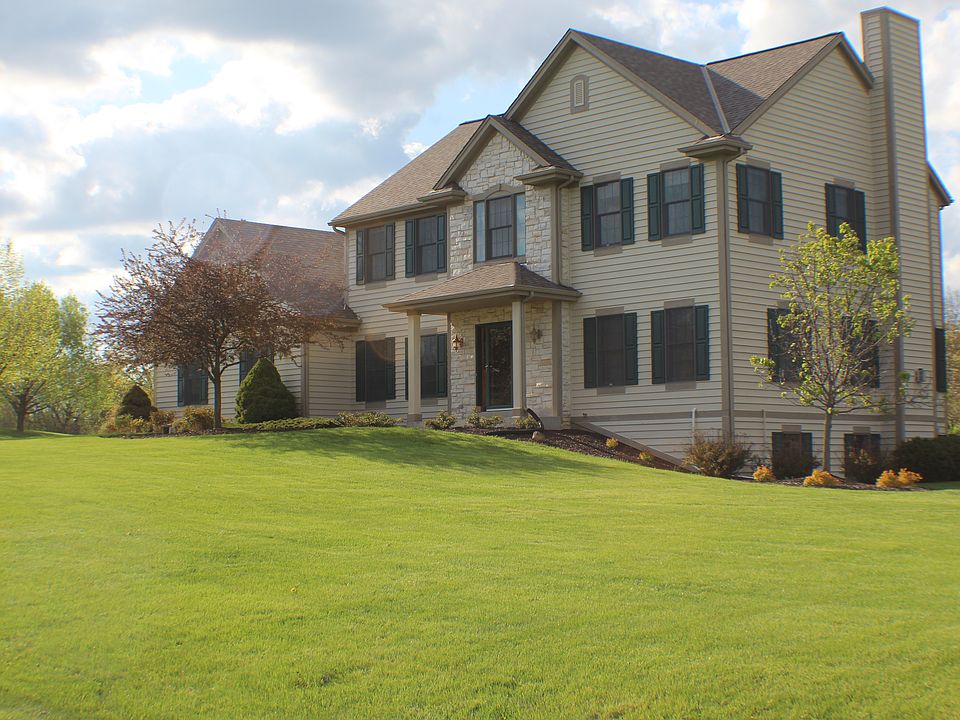 ....STOP!!Here it is!Beautiful 4 bdrm Colonial in Butterwick Ponds of Mukwonago on 1.5 Acres.Amazing Kit w/Maple Cabinets,Granite Tops,Granite Breakfast Bar & SS Appls.Stunning Cherry Floors walk you through the Eat In Kit,Living Room w/Gas Fireplace,Family Room,& Dining Room.The Woodwork here is Absolutely Gorgeous!Well Appointed main Floor Laundry adds to the appeal.Sprawling flat open yard offers fantastic views from the inside or when relaxing out on your patio.Large 3.5 Car Att Garage for all the toys.Peaceful Mstr Bdrm offers soaring vaulted ceilings,Dual Vanity w/Granite Walk In Closet,Jacuzzi Tub,& Sep Shower.2nd Full bath upstairs also w/Granite Dual vanity to accommodate the other nice sized bedrooms.Lower Level is perfect for your future vision w/Stubbed bath & Exposed Windows!
