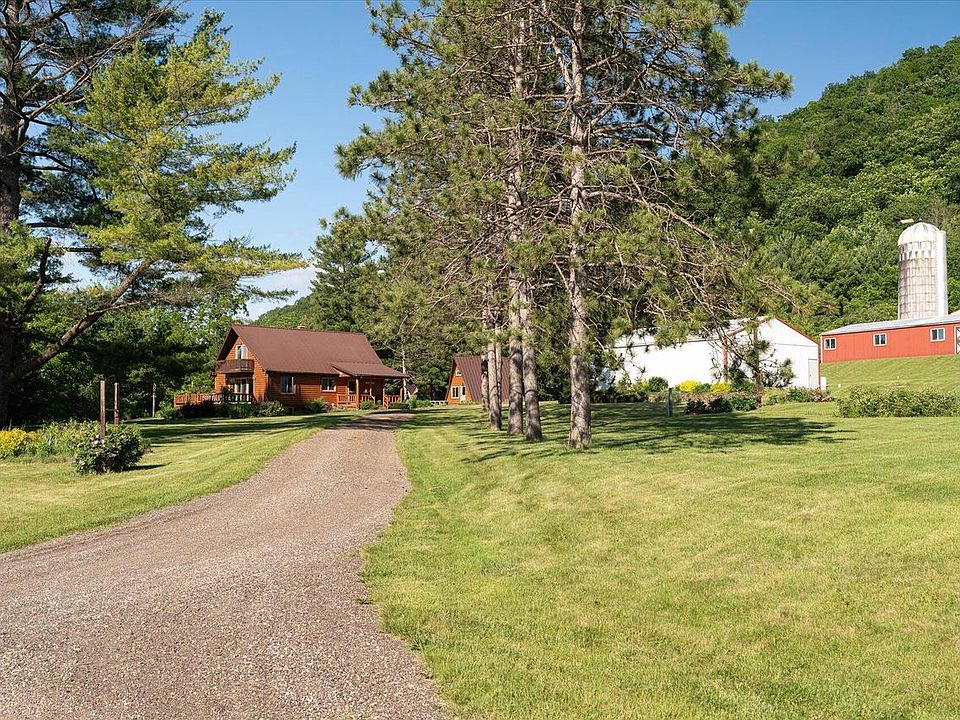 Welcome to your rural country property, nestled in a peaceful & serene setting. This home features a spacious open floor plan connecting the kitchen, dining, & sitting room along w/ a primary bedroom, full bath, laundry area, 1/2 bath, & 2nd living room. Two bedrooms are upstairs w/ walk-in closets & a 1/2 bath. The basement offers a recreational area and bonus rm (possible 4th BR). Step outside to enjoy the updated 27x12 deck, wildlife, & a beautiful flower garden w/ pond. The 3.4 acres are perfect for gardening, a hobby farm, or open space enjoyment. A charming A-frame cabin w/ loft, a 30x40 insulated garage, a 45x63 pole shed, & a 90x24 barn are also included. Versatile spaces for storage, workshops, or a home-based business. Located 15 minutes from Viroqua & under 2 hours from Madison.