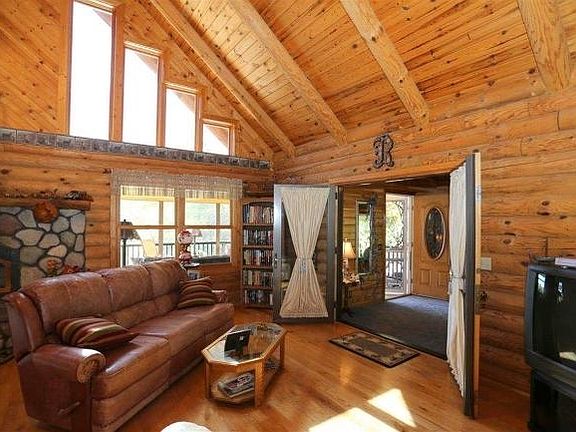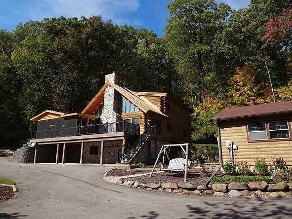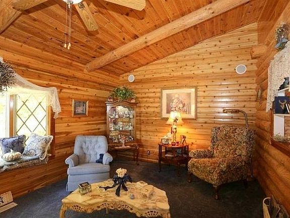 Lovely full log home on this gorgeous 75 acres of woods, meadows and super views. 3 bedrooms, 2 bath plus all appliances included in the attractive kitchen. Soaring cathedral ceilings, huge wood burning fireplace and walkout basement makes this the ultimate get-away for you. Very open floor plan and wonderful views from the composite deck. Detached 3 plus car garage with heated workshop and 30x30 pole building.