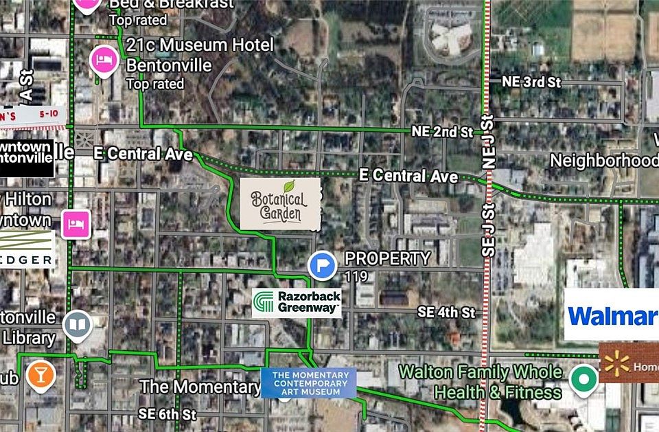 Urban lifestyle meets opportunity with this newly zoned DN-4 (as of 10/28) prime corner lot in the heart of downtown Bentonville. From your front yard, you can see the Momentary and the Razorback Greenway bike path across the street, the Walmart Home Office campus a couple blocks away, and future botanical garden taking shape just down the street. This property captures the essence of downtown living — high visibility, unbeatable walkability, and stunning westward sunset views. Rarely does a location with completed rezoning and such future promise come to market — seize this opportunity to create, expand, or invest in the next chapter of Bentonville’s growth.