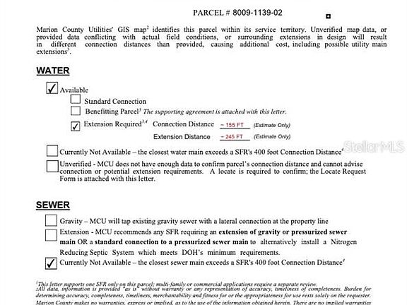 CITY WATER connection available! MARION OAKS subdivision. Many of the lots here in Marion Oaks subdivision are not able to connect to city water. Potentially save thousands of dollars by not having to install a well system for water. This neighborhood is quickly developing with lots of new construction and increasing property values. An environmental report has just been done and shows no issues, including NO gopher tortoises to worry about! This property is high and dry and has some newly built homes on the block. It measures approximately 135 feet deep x by 85 feet wide according to the county website. It is approximately 0.26 acres (11,326 square feet) of space. This lot in Marion County parcel 8009-1139-02. For driving directions enter these GPS coordinates into google or apple maps: 28.986263, -82.212197. Listing address is not an official address and is just for mapping purposes. Marion Oaks boasts a Community Center with a gym, basketball and tennis courts, a playground, a library, and more. There are NO HOA fees here. Enjoy quick access to I-75 for convenient travel. See attached photo of a report from the County showing availability of public water.
