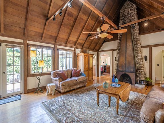 Authentic charm from top to bottom in this quintessential Carmel by-the-sea storybook home on a large lush corner lot. Originally built in 1925 by the noted Hugh Comstock, this house is filled with period architectural details, including a gorgeous copper and Carmel stone fireplace in the living room, open beam ceilings, redwood built-ins, plastered walls and archways and nooks and crannies everywhere. It's the prefect blend of the character of "old world" Carmel with modern amenities; quirky and comfortable both. In addition to the 3 beds 2 baths in main house, there is a darling guest suite above the separate two car garage that even has distant ocean views. Corner lot is fully landscaped in a story book style with Carmel stone walkways and flowers everywhere. First time on the market in over 60 years.