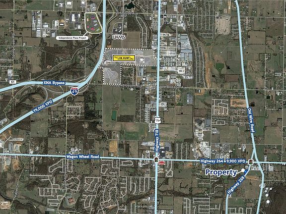 Land for sale with Highway 265 access and currently zoned “A-1,” Agricultural. Property is near the J.B. Hunt Transport corporate offices, Interstate 49 and potential Amazon distribution center along