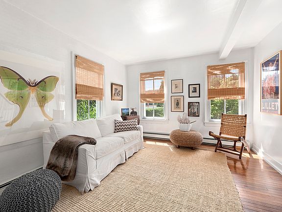 This lovely, recently renovated, c.1890 farmhouse has a front parlor with living room and dining area plus a cozy den with television. The new kitchen is the highlight and has French doors leading to the deck and well maintained yard with outdoor shower. First floor bedroom and bathroom and another 2 bedrooms upstairs share a bathroom with claw foot tub. With a worldly decor and tons of Sag Harbor charm all seconds from the vibrant Main Street and Haven's beach. Additional comforts include private drive for off-street parking.
