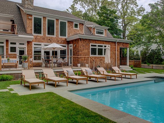 Upon entering the home, you will immediately be struck by the bright and airy atmosphere illuminated with natural light. There are two living rooms one with double height ceilings neighboring a dining table comfortably set for ten. Novice and well-seasoned chefs are welcome to cook in the gourmet kitchen that comes with an oversized island, stainless steel appliances, and ample counter space for meal prep or laying out hors d'oeuvres. During the day, curl up with your favorite book and relax on any one of the loungers adjacent to the glistening pool. Or for those seeking some shade, relish in the summer breeze on the large patio or upstairs deck's magnificent daybed. Head to one of the nearby beaches a 10 minute walk to Foster Memorial Town Beach and 5 minute drive to Haven's Beach you have nothing but wonderful options. As the sun begins to set, hop on a provided beach cruiser and venture into downtown Sag Harbor for sight-seeing, shopping, and renowned local restaurants. Retire to one of the spacious bedrooms for a peaceful night's sleep, or stargaze with a nightcap from the upstairs deck. Rest assured, there is plenty of drawer and closet space to completely unpack and settle in. With new coastal furnishings, pool, and wonderful amenities, this Coves Bay Beauty has all the makings for a memorable stay!This property has a max occupancy of 10Please note: Additional date ranges available upon inquiry