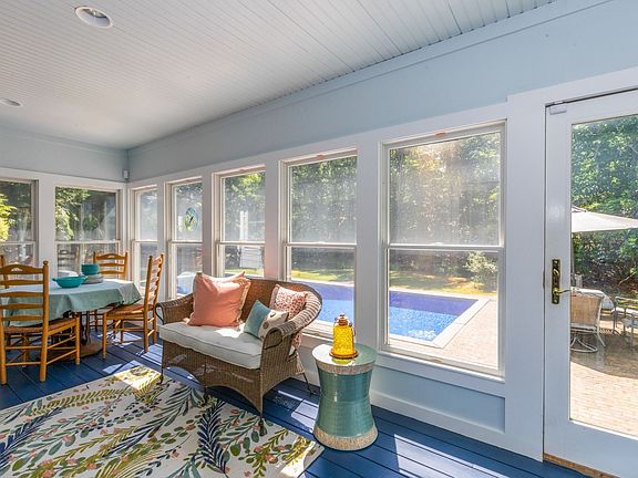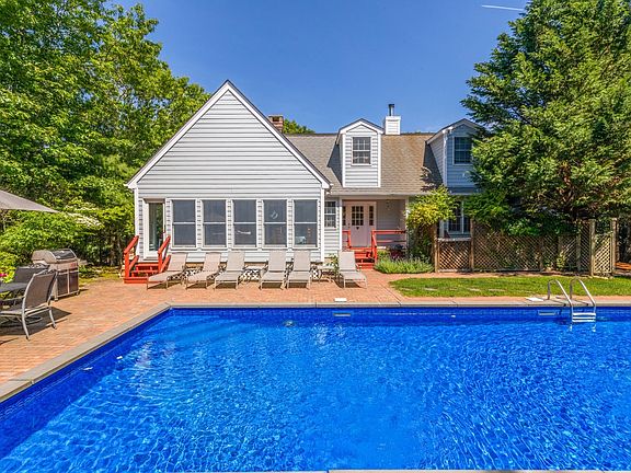 square foot home featuring five gracious bedrooms, three and a half baths / two-story height living room / private guest quarters. Bright, open and airy main kitchen feeds, informal, formal and sunroom dining areas. Additional balcony seating and entrance to guest quarter. Master suite features large walk-in closet and private balcony, spa bath with jetted tub and private rear steps to pool. Adjacent to master suite is the master study / office with TV lounge and balcony. Secluded backyard with a heated pool and outdoor shower. Extensive decking surrounds your Hamptons summer rental. Great home for entertaining! RP230979