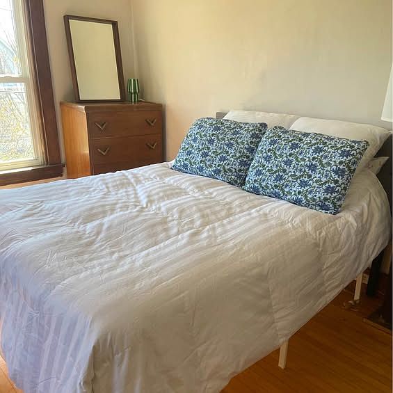 Fully furnished apartment in the quiet hill section of Saint Albans City. The apartment has one bedroom, one bathroom, and one small office. There are hardwood floors, a clawfoot tub, and off-street parking. This apartment is suitable for one traveling professional or a couple. One well-behaved dog considered, no cats. Laundry in basement, small shared back yard. Large covered front porch. Income and credit requirements apply. Please reach out with any questions.
