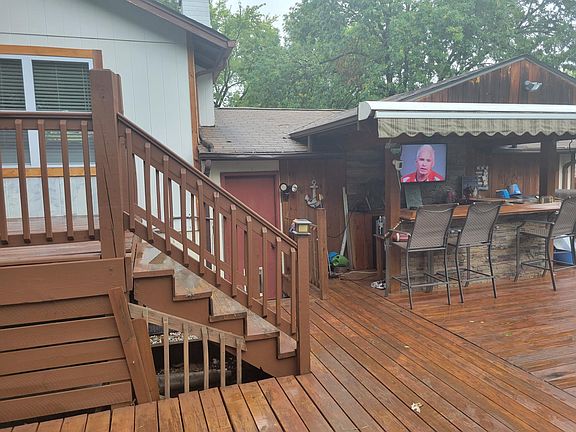 Wood burning fireplaceSurrounded by deckTv hookupsWasher and dryerOutside bar under roofGas range