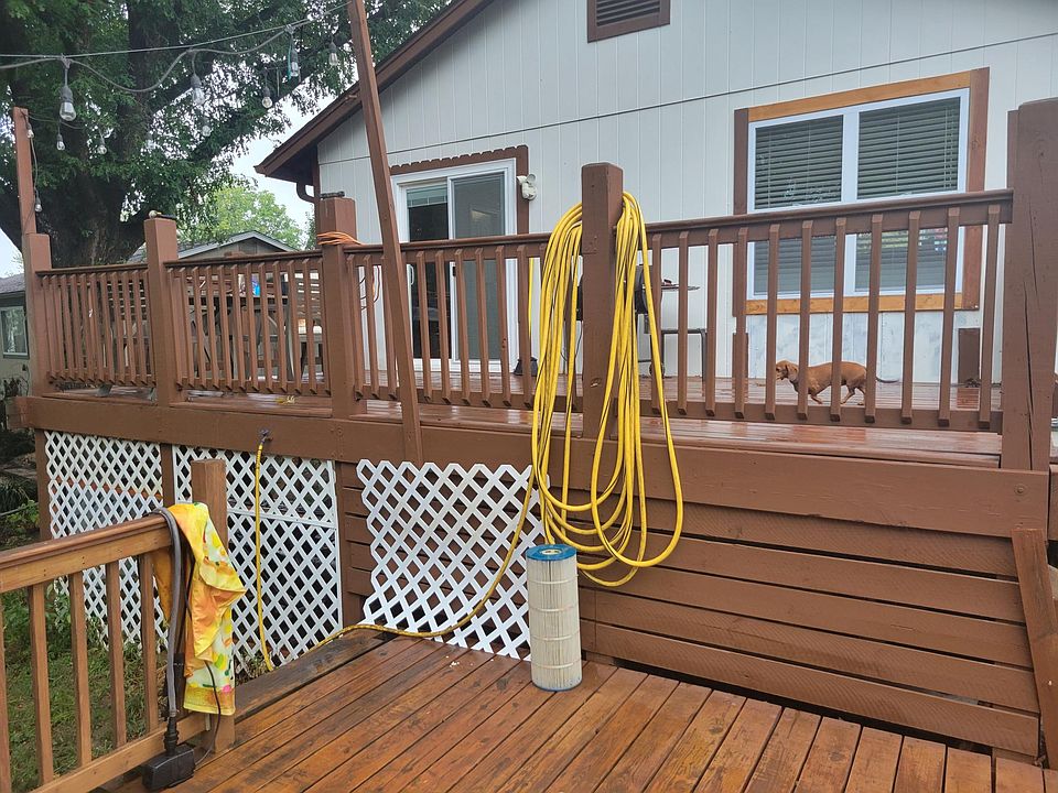 Shopping with walking distance. Quite neighborhood, close to Page extension. House is on a no through traffic. 24ft. Above ground pool, surrounded by deck. Outside bar under roof. TV hookups, wet bar in lower level with wood burning fire place. TV hookup over fire place. Refrigerator, gas range and microwave. Washer and dryer. Pet condo built into garage. I need rental history, number in family, pets, why are you moving, annual income job history