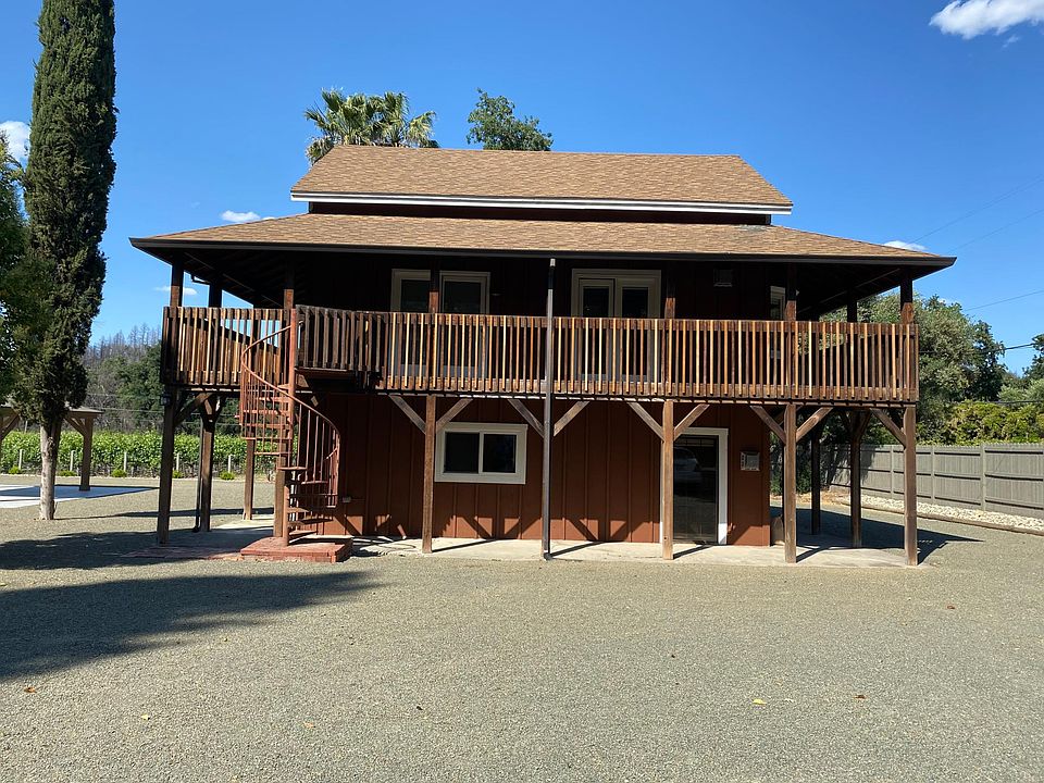 Beautiful vineyard and country views. Private, updated two story 2100 sq. ft. farmhouse 5 minutes from downtown St.Helena. Within minutes to wineries, hospital, restaurants and shopping. Very clean. Located upstairs are two bedrooms, each with en suite bathroom, and an office. All rooms upstairs have new lifetime laminate flooring. A third full bath is located downstairs. Heat/AC. New day/night cellular shades throughout house. Laundry room with new washer/dryer. Kitchen with natural stone floor, Blue Star range/Viking hood and new dishwasher. Second story has 3/4 wrap-around covered deck plus a 250 sq. ft. sun deck. Electric car charging outlet. Fully fenced yard, 14 x 16 ft. Gazebo with porcelain tile flooring and Edison string lights.