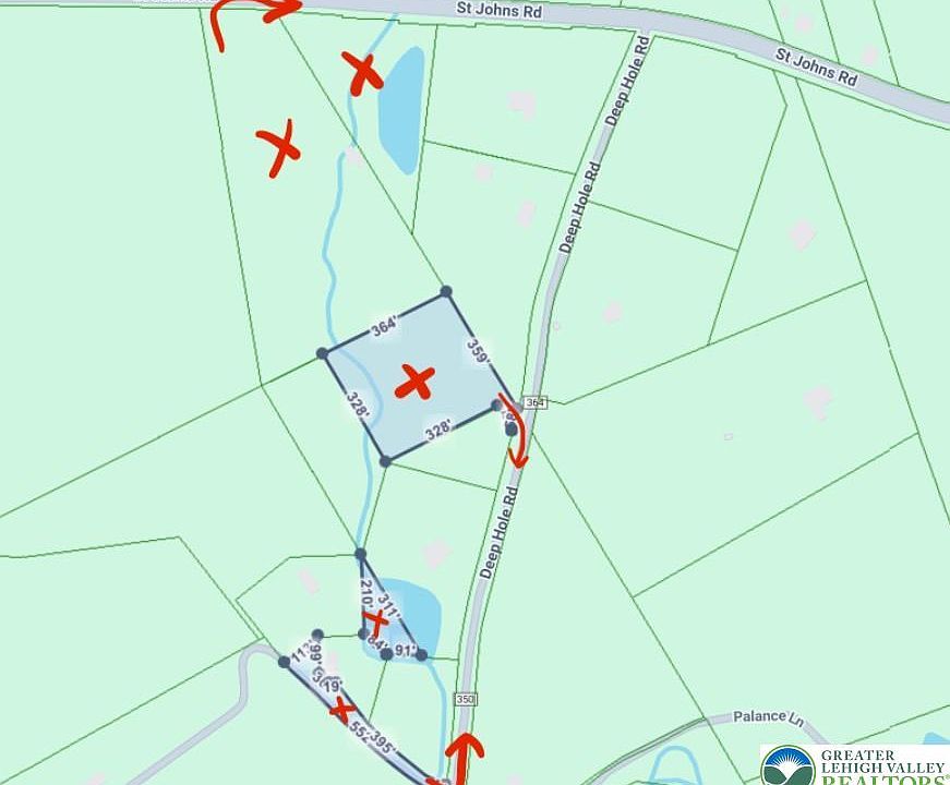 3.79 acres of land zoned Rural-Agricultural featuring a private pond and year-round creek. Ideal for farming, livestock, or recreation. The included map highlights these parcels in blue, with adjoining parcels marked by red X's showing the larger property. Buyers seeking flexibility may inquire about the full spread, which includes a beautifully renovated home and a second pond separated between multiple parcels to offer diverse uses while remaining individually owned if desired. A rare opportunity to start small or expand into a complete, multi-use agricultural estate.