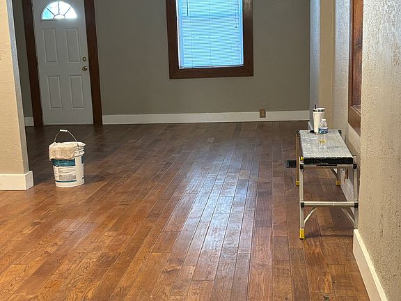 Home has newer, all wood flooring, except in bathrooms and kitchen. No rugs (great for someone with allergy problems).