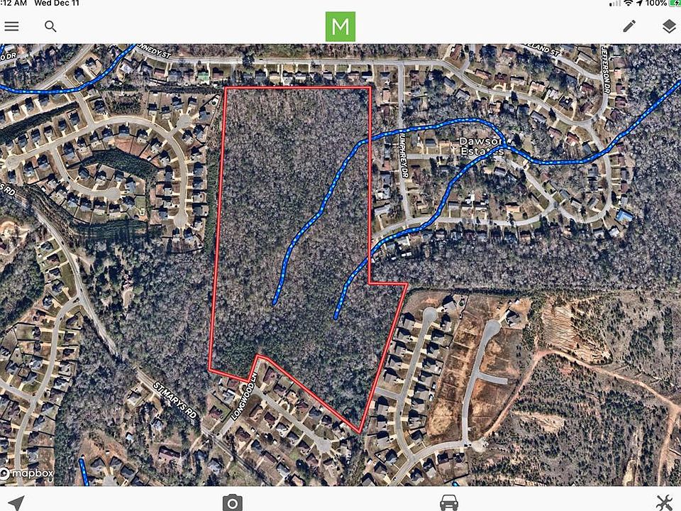 Close to Fort Benning and I-185. 34.53 acres of undeveloped (Zoned SF-2) land in South Columbus. Entrances off Kennedy St, Honey Do, Longwood and Eisenhower