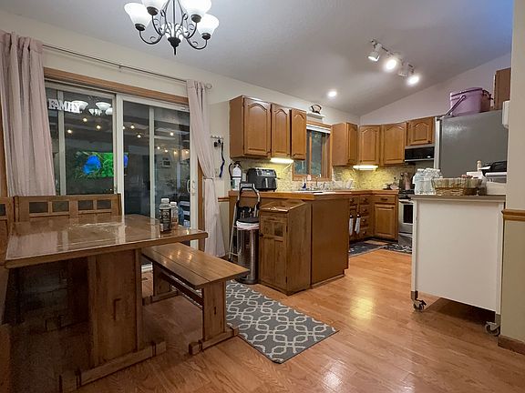 Fenced yardPeninsula barTwo storage shedsSoaring vaulted ceilingsFire pitGorgeous skylightGas stove