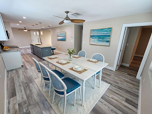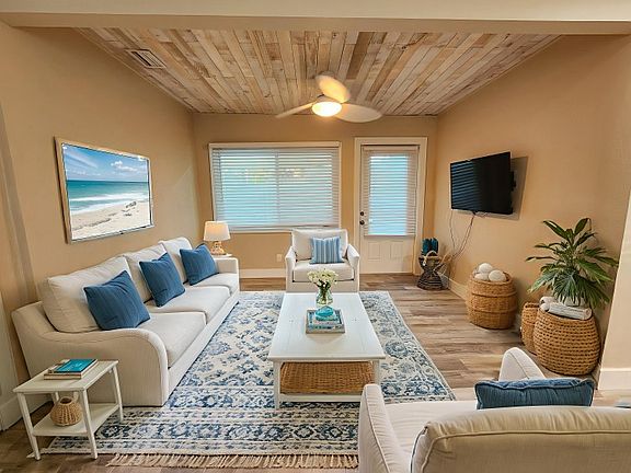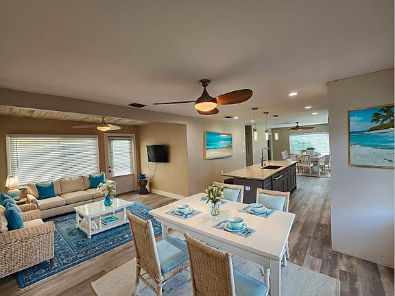 Beach living, steps to everything; shopping, live music, restaurants, blocks to the St Pete Community center - pool, Concerts/movies in the park, activities, etc. Steps to the beach where you can walk/run/ride for miles. Stop at all the resorts/bars/live music along the beach! Catch the free beach rides/free/shuttle to any destination on the beach. Newly remodeled with new windows, roof, floors, doors, appliances, etc. ; The unit features an 11' island; Separate dining space next to open eat-in kitchen. leading to a patio and a back yard, large living room with a queen size memory foam pull out -Smart flat screen tv, movies, cable, & wifi. Master bedroom suite with walk-in shower, walk-in closet, personal refrigerator, and access to side patio oasis! Second Bedroom with King bed, large closet, computer desk. Tandem parking for 2 cars. In unit laundry! Front Patio with Palm trees, side patio, and rear fenced yard with room for a patio/table/chairs! You don't want to miss this one, nicest home in the area, all New recent remodel!! Pictures are stagged. Seasonal rental December-April furnished $5500mth, Unfurnished annual lease $4,000.
