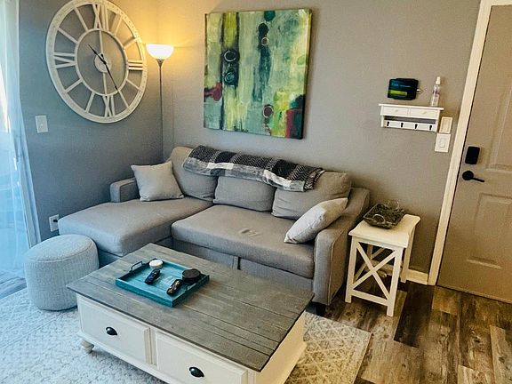 NEVER affected by hurricane. This desirable first floor condo (no stairs) with waterproof flooring, 2x 50in+ TV, stainless steel appliances, stackable washer/dryer, keyless doors access, queen bed, sofa sleeper high speed wifi, fully stocked kitchen and plenty of parking. Located on "less contested" area of the community with low car traffic. Pets? Okay within reason.