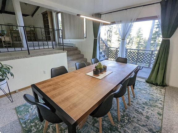 Discover a serene retreat on the hillside. This charming 4-bedroom, 2-bathroom home features an updated kitchen and bathrooms, ensuring modern comfort. The open great room, complete with a fireplace, invites relaxation and tranquility. Step outside to enjoy 3 acres of beautifully treed land, a fenced yard and enclosed garden areas. This is a duplex. The available space is the upper 2 levels of the home and the spaces mentioned above. Currently furnished, can accommodate renters preference with 6+ month lease.