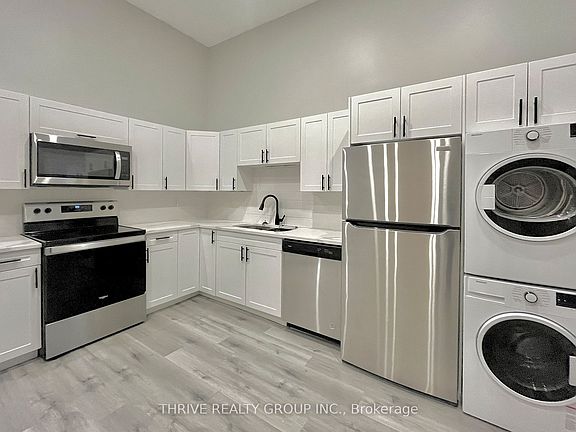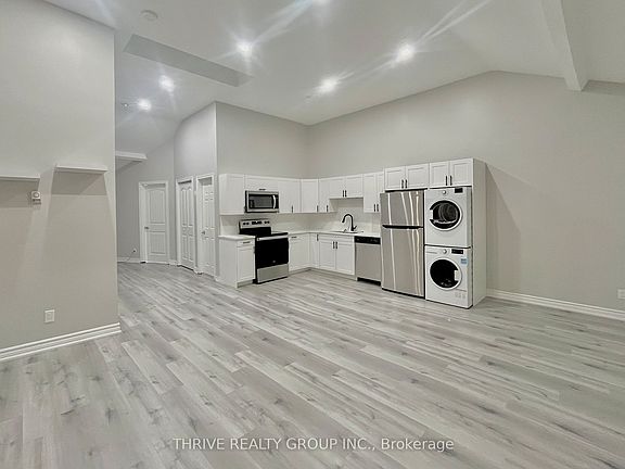 Renovated and move-in ready, this all-inclusive 2-bedroom, 1-bath top floor (3rd) apartment in downtown St. Thomas offers modern living at its best! Enjoy unique bedrooms, a sleek open-concept kitchen with new stainless steel appliances (including a dishwasher and over-the-range microwave), and contemporary countertops. The unit boasts large closets, soaring 12+ foot ceilings in the living room, updated lighting fixtures, and fresh paint throughout. Perfect for entertaining, the generous living and dining spaces offer plenty of room, and in-unit laundry adds extra convenience. Plus, an off-site parking space is included. Just a short drive to London and Port Stanley. Don't miss this stylish, turn-key rental with plenty of natural light!