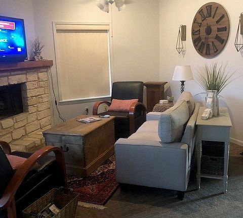- Fireplace features: Living Room, Raised Hearth, Wood Burning