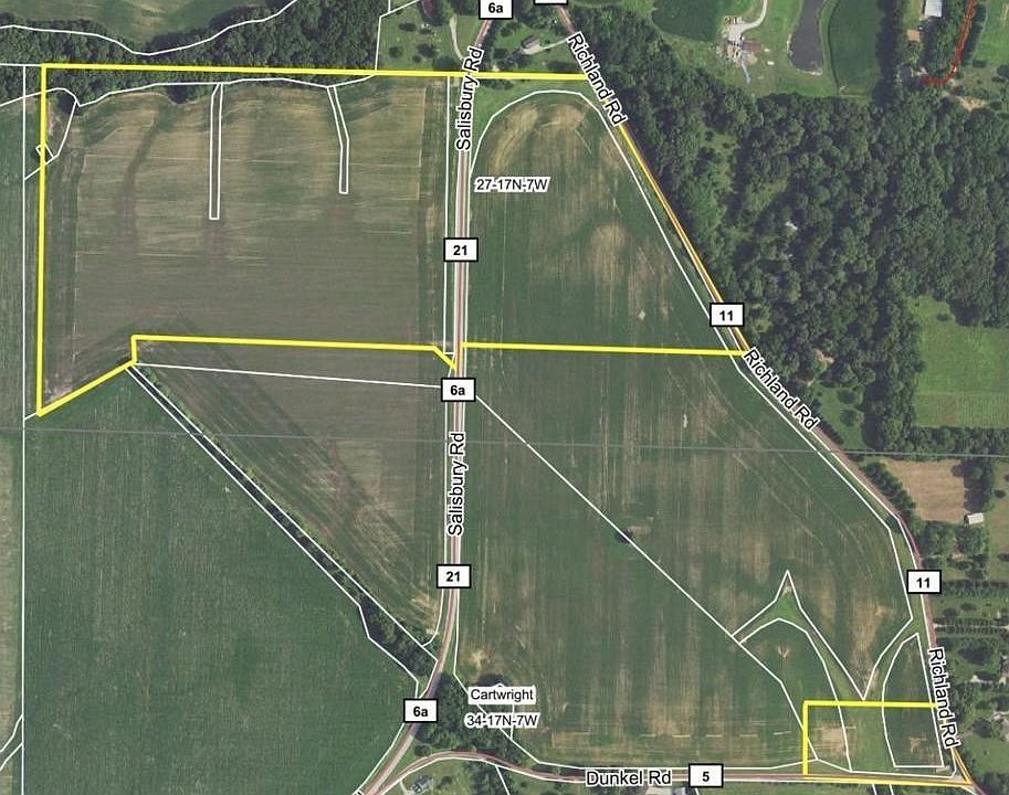 Solid production history and geographic proximity to Pleasant Plains make this 55.68± tract an appealing acquisition in Northwest Sangamon County! Access is a breeze as the farm is loaded with road frontage from Salisbury Road/Co Hwy 21, Richland Road and Dunkel Road. Approximately 46.72± acres are in production with a Class A Productivity Index Rating of 135.4. Primary soil types are Osco and Ipava. The Southeast 3.22± acre parcel of the property has its own parcel ID, making it simple to sell off separately at a later date as a build site. Or perhaps you’ll build your own home or bin site on that section of the farm. Pleasant Plains School District. Buyer will assume the 2026 flex lease (available upon request); farm is open for 2027 and beyond. Property is selling via live in-person and online auction on Thurs., Nov. 20 at 10AM in Springfield. Property will bring what the market bears at auction. If you are looking for additional acreage, this is one of four tracts that the Roberts Family Trust of 1978 will be selling at auction the same day. See MLS numbers CA1039904, CA1039906, CA1039905 and CA1039909.