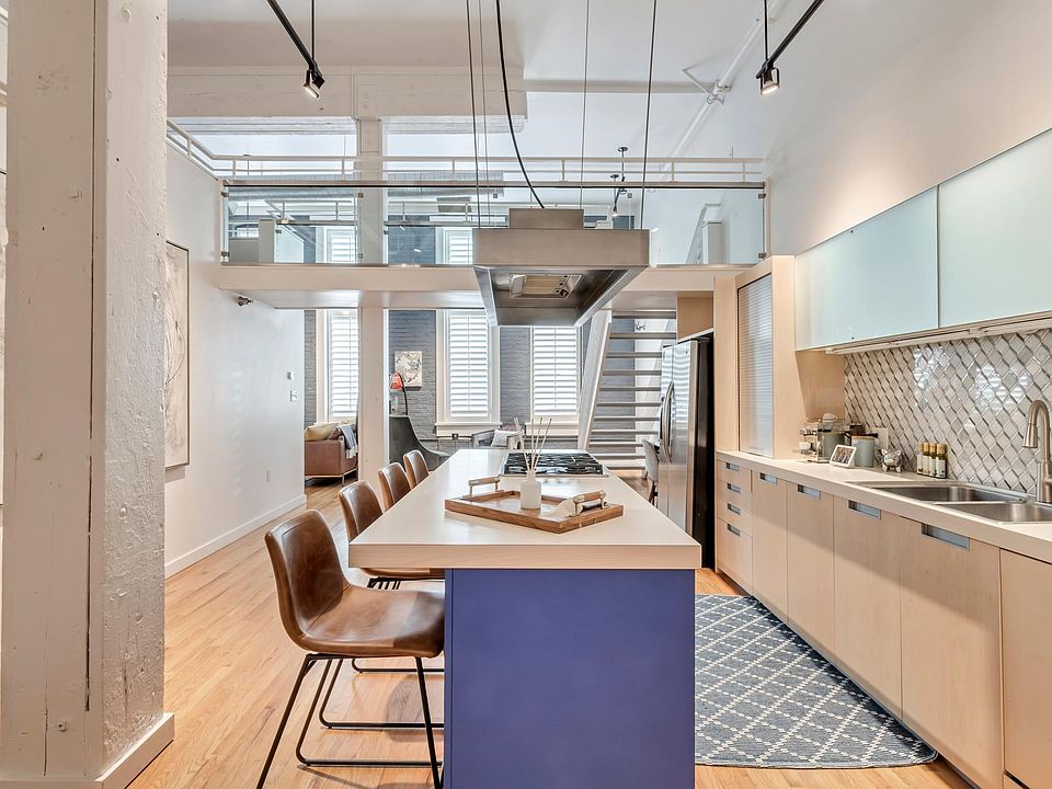 The unit is a legal 2 bedroom (1 loft bedroom + 1 bedroom downstairs - currently being used as pool/2nd living room) but can easily be converted to 2nd bedroom with room separator (tenant's option and expense). Plenty of closet space in the huge bathroom (2 closets) and additional closet/cabinet in loft bedroom. 1 Reserved covered parking in the secured parking structure. In-unit washer/dryer. Central AC/heating with Nest smart thermostat.