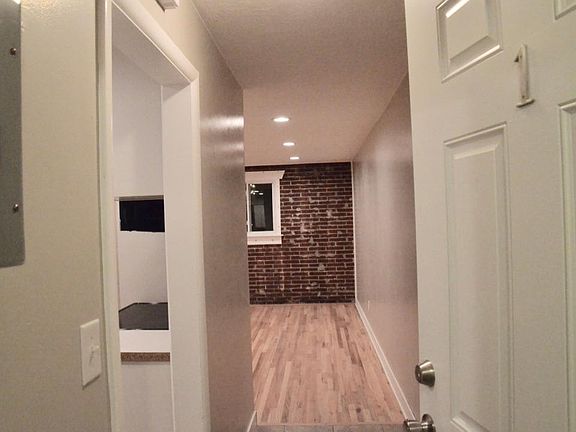Wood floorsCovered carportExposed brick wallOutside storage closetWell litNew shower and bathroom