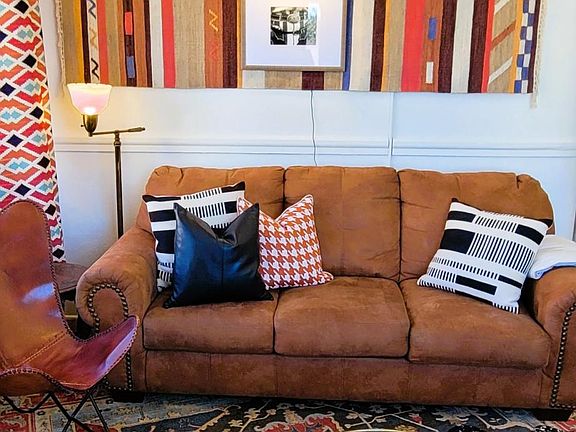 FULLY FURNISHED Right on the Riverwalk in the heart of Downtown San Antonio. This apartment is a corner unit that has a lot of charm and gorgeous views and13 foot tall ceilings. The sleeper sofa has a pull out queen bed for extra sleeping space. Can accommodate special requests if available. Hang out or have a bite on the shared large patio that overlooks the Riverwalk and gives a direct view of the boat parades without competing with the crowds to get a view. It is walkable to all downtown attractions, but you can also hop on the VIA bus that stops right outside or grab a scooter or e-bike to rent. It has a Microwave, & a Smart TV. Can accommodate other requests if available.