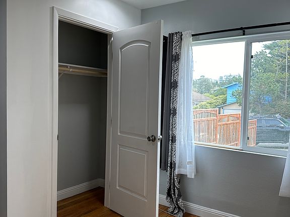 Private, spacious bedroom with hardwood floors in the front of a single story home. Gets ample natural light and has a large window to enjoy the sun from indoors. The room has its own closet, and space for extra dressers. Your bathroom is just down the hall and shared with two other rooms in the house. Full, accessible kitchen with stainless steel appliances and plenty of cabinet space is shared as common area among all tenants. There is on site laundry, easily accessible and usable by all tenants as well. Elevated backyard deck equipped with market lights provides more common area for tenants to enjoy.