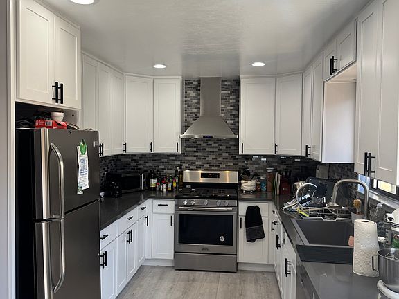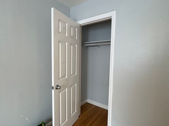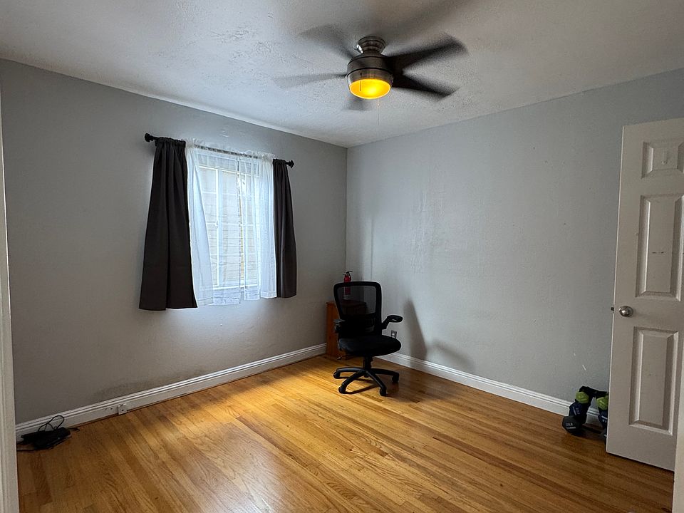 Private, medium sized bedroom with hardwood floors in the back of a single story home. Has a large window and ceiling fan for extra circulation indoors. The room has its own closet, and space for extra dressers. Your bathroom is next door at the end of the hall, and shared with two other rooms in the house. Full, accessible kitchen with stainless steel appliances and plenty of cabinet space is shared as common area among all tenants. There is on site laundry, easily accessible and usable by all tenants as well. Elevated backyard deck equipped with market lights provides more common area for tenants to enjoy.