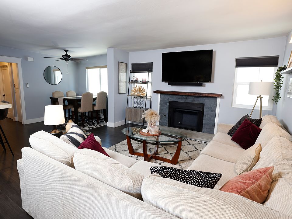 Welcome to this bright, fully furnished 2-bedroom, 2-bath condo in a secure, gated building in North Park near 30th and El Cajon. I was active duty military, and this was my home for years I put a lot of care into making it a warm, comfortable space, and it's been thoughtfully set up for easy living. Both bedrooms come ready to settle into with smart TVs, desk areas, and all furnishings shown. The open living space features a fully equipped kitchen and a roomy living area with a comfortable sectional great for relaxing or hosting a guest.