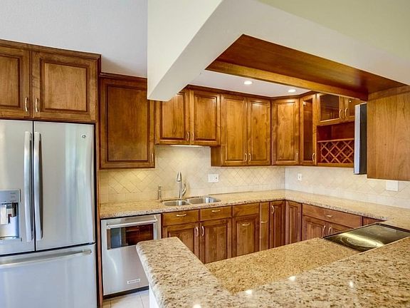 * Custom kitchen: granite countertops, stainless steel appliances (including 1-year-old fridge/freezer), tiled backsplash, and under-cabinet lighting.