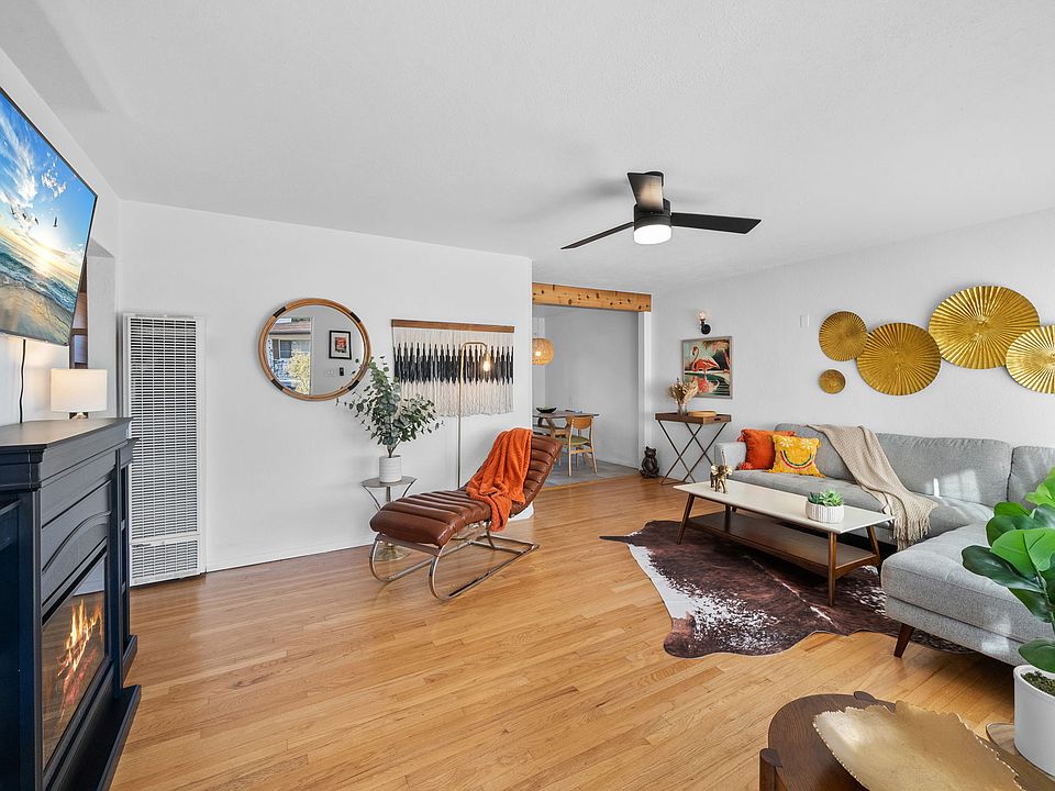 Electric fireplacePrivate fenced yardFull kitchenOverlooking the canyonMagic bullet blenderKeurig coffee makerOpen living space