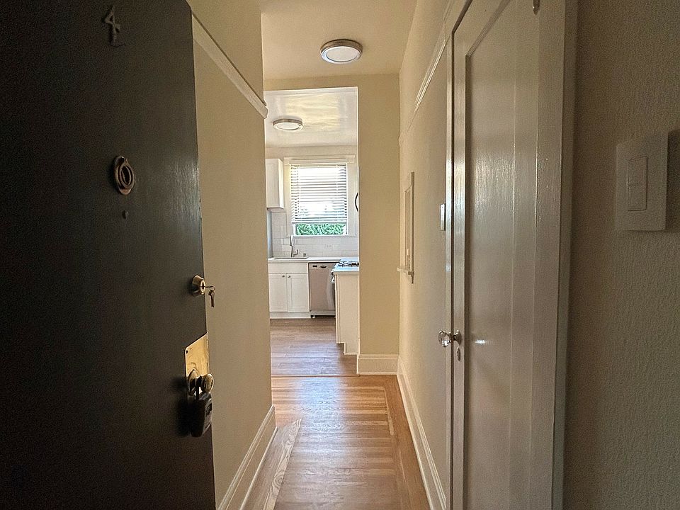 Second floor apartment has new hardwood floors except in the bathroom. Large bedroom is bright and has a wall closet with new sliding mirror doors. The bedroom has bay windows, new wall heater and new ceiling light fan. Large open kitchen includes all new appliances, with gas stove and dishwasher. Bath is standard with shower-over-tub.Building is on Valencia Street at 23rd Street in the Inner Mission. Thriving neighborhood offers a broad range of shopping and dining opportunities. Walk Score is 100, Transit Score is 83. BART, J-Church MUNI and bus lines 12, 14, 27 and 49 are all within easy walking distance. Utilities Included: Water and Garbage.Move In Cost: $4,200First months rent (2,100) + security deposit (2,100)Noise Level: HighIf noise is a concern, this is NOT a good fit.This unit is a rental unit subject to the San Francisco Rent Ordinance, which limits evictions without just cause, and which states that any waiver by a tenant of their rights under the Rent Ordinance is void as contrary to public policy.