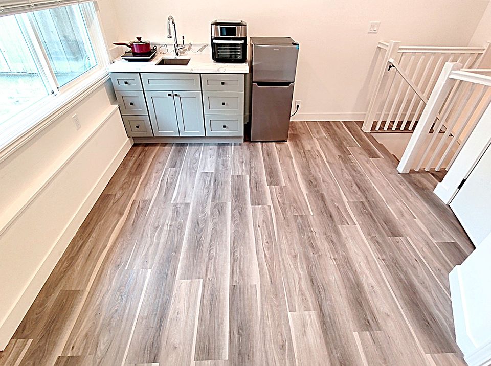 07. Low maintenance hard wood floor & PRIVATE BACK YARD.
