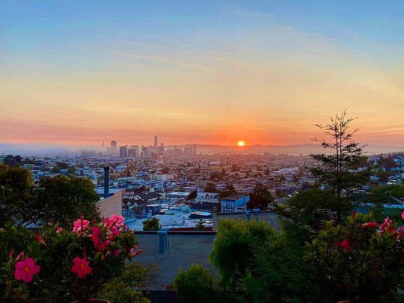 This large, colorful two bedroom, two bath condo has incredible views of downtown San Francisco, Corona Heights, the Castro and everything in between. It is just a 10-minute walk from all the bars, restaurants, shops and amenities of both the Castro and Noe Valley neighborhoods. The condo is on a safe and quiet cul-de-sac with very little street noise. Kite Hill Park and a beautiful local community garden are just steps away. The condo is a plant-lover's dream, with beautiful houseplants throughout providing a lush garden-like feel inside as well as out.