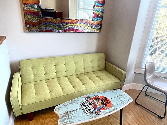 Enjoy the great city views and tons of natural light with relaxing cool blue, green and sunset colors. The Ocean Beach surfboard cocktail table says it all. Green convertible flips out into a guest bed because your friends are going to want to crash in this relaxing pad after a fun night out in the neighborhood. You are just a block up from all the great shops, cafes and restaurants on Fillmore street. Several groceries stores are nearby. Our building scores 100 on Walkscore. Super easy and convenient to walk, take MUNI, or order a car service for pickup within minutes. Plus, there are great parks nearby including Lafayette Park which has a very nice dog park. This is a very nice, upscale and vibrant neighborhood.