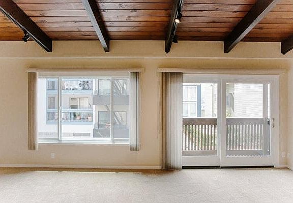 *The spacious living room features: oak beamed ceilings, a 3-sided gas & wood-burning fireplace, and a lovely walk-out balcony with peek-a-boo views of Pier 39, Alcatraz & Angel Island.