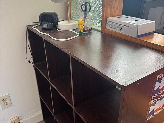 Small refrigerator, pantry, closet, electric portable stove, and water boiler (left by previous tenant).