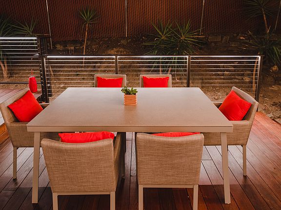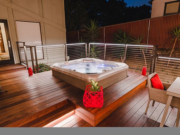This house is a mid century modern masterpiece. The exterior was painted 2 years ago, the interior main living area was upgraded with Thermador appliances, and the master bath includes a walk in shower with 2 heads. The back deck was upgraded with ipe wood and a hot tub.